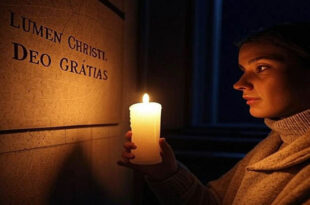 Wprowadzenie: Światło w nocy świata W świecie często pogrążonym w ciemności grzechu, cierpienia, zamętu i obojętności, Kościół głosi prawdę, która od wieków rozbrzmiewa w sercach wiernych: „Lumen Christi” – „Światło Chrystusa”. To wezwanie, szczególnie uroczyste podczas Wigilii Paschalnej, nie jest jedynie liturgiczną formułą czy pamiątką z przeszłości, ale zwiastowaniem nadziei …